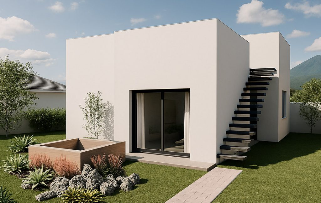 Esta vivienda pertenece a una serie de viviendas pequeñas a desarrollar en una urbanización en un entorno tranquilo rodeado de montañas, a pocos kilómetros de Sant Joan de Moro.
