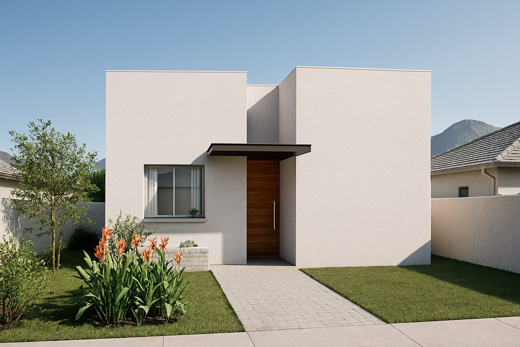 Esta vivienda representa una interpretación contemporánea del ideal moderno, inspirada en la claridad formal de la máquina de habitar y enriquecida por el uso de materiales naturales y diseño bioambiental. La planta se organiza de forma racional y eficiente: un acceso definido conduce directamente al núcleo social de la casa que se abre mediante un gran ventanal hacia el jardín, estableciendo una relación fluida entre interior y exterior.