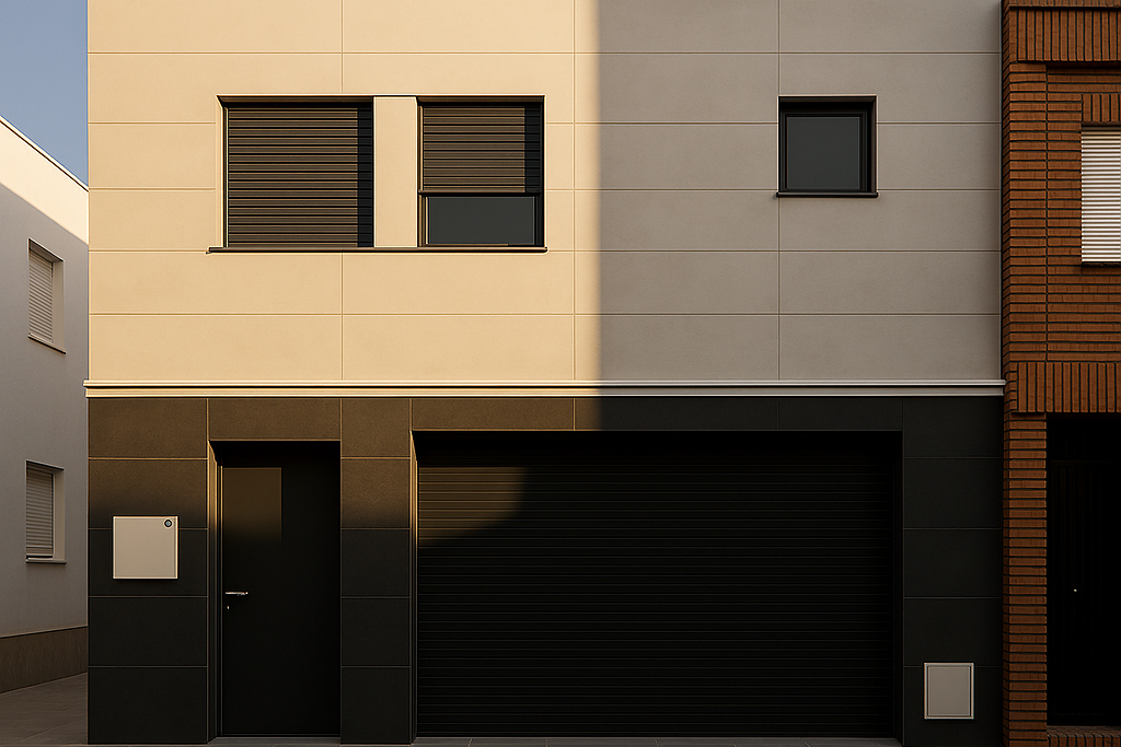 Esta vivienda consolida la trama urbana de un solar remanente entre edificios residenciales.