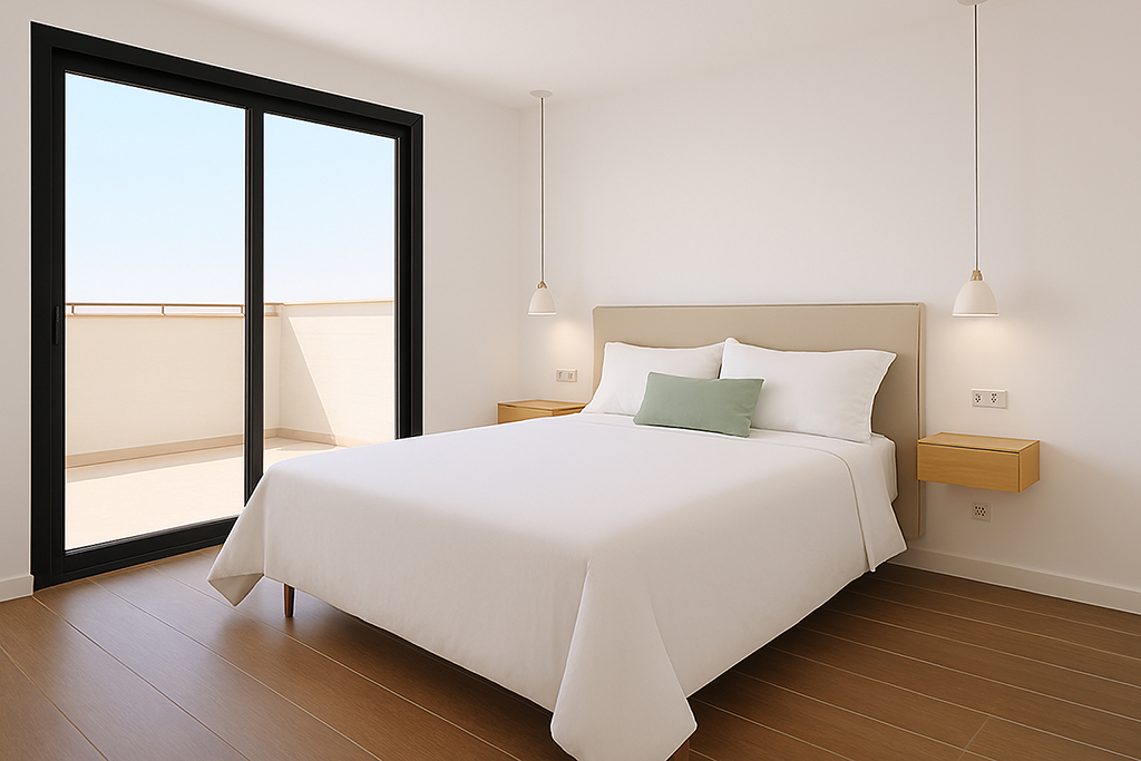 Subiendo las escaleras, un pasillo organiza los 3 dormitorios y el baño, dejando una amplia terraza hacia el patio interno.